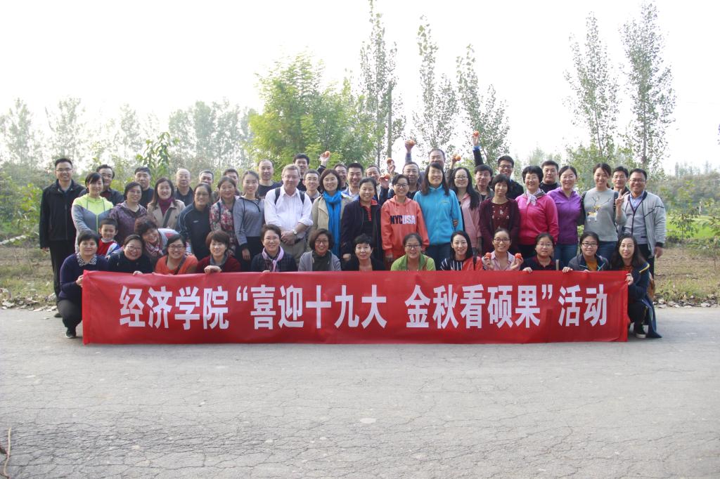 在中国共产党第十九次代表大会召开之际,为丰富教职工业余生活,进一步增强学院凝聚力,10月19日下午,经济学院分工会组织教职工赴济阳县垛石镇开展了“喜迎十九大,金秋看硕果”活动。学院全体班子成员和部分教职工共五十余人参加了此次活动。