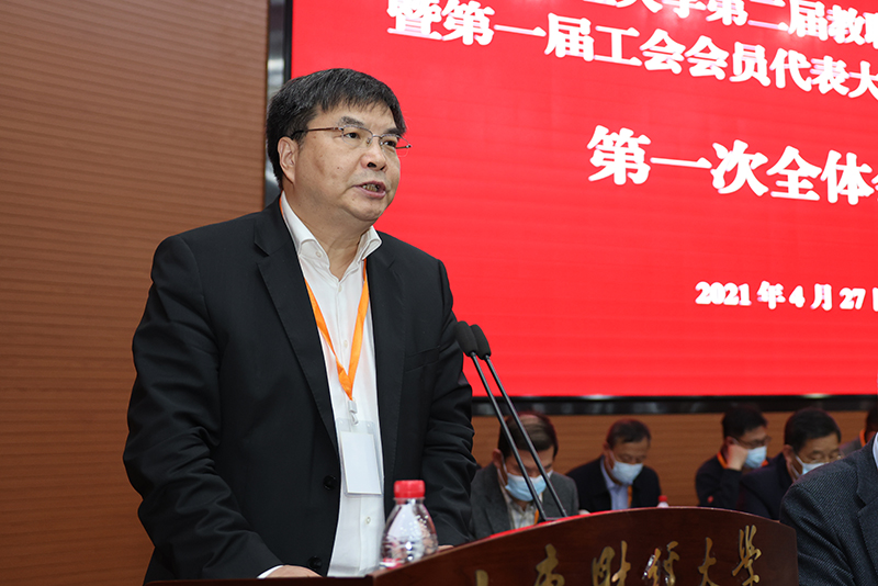 校党委副书记韩作生作《山东财经大学“十四五”事业发展规划》(草案)编制情况的说明。会上,印发了《工会工作报告》《学校财务工作报告》《关于山东财经大学二届一次教代会提案办理情况及二届二次教代会提案征集情况的报告》《关于第二届教职工代表大会执行委员会第二次会议通过的<山东财经大学绩效工资管理实施意见>情况的报告》。