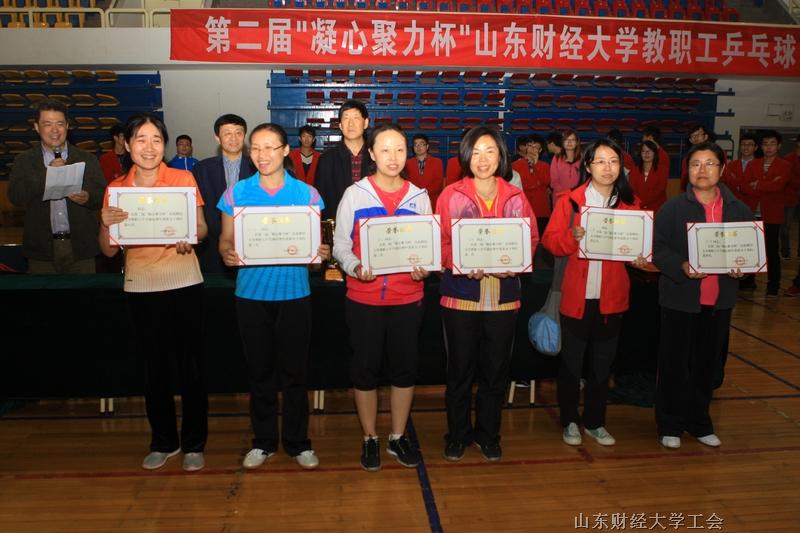 图书馆高辉勇夺女子单打冠军、体育学院曹杰获得亚军、体育学院曲红军获得季军,文学与新闻传播学院张洋、金融学院唐磊、机关二队张艳霞、工商管理学院周霓、法学院王维芳分获女子单打四至八名。