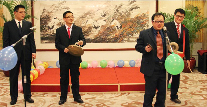 晚会开始前的视频短片“2012,我们一起走过”真实生动地再现了保险学院成立一年来全体师生齐心协力、团结奋进所取得的一系列丰硕成果。闫庆悦在致辞中简要概括了一年来学院在学科建设、教学管理等方面所取得的成绩和不足。他感谢在座的每位老师一年来的辛勤付出。朱传武在致辞中强调“一家人”意识,保险学院成绩的取得是大家共同努力的结果。希望大家在新的一年里继续努力,争取更大的成绩。